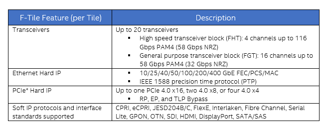 Table 1. Intel Agilex 7 FPGA F-Tile Features