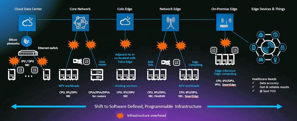 During the Software Defined and Programmable Platforms session on Intel Vision 2022 Day 2, Sachin Katti, Chief Technology Officer, Network & Edge Group (NEX), Intel, described how Intel’s strategy and technology allow the company to arm its customers with the capabilities they need to transform their datacenters and edge deployments. Intel IPUs are already a key part of the Intelligent Fabric offering in datacenters and primarily target the needs of cloud service providers (CSPs), but communications service providers (CoSPs) and large enterprises are reaping the benefits of IPUs in their datacenters as well. Intel IPUs improve security, reduce overhead, and free up CPUs to run business workloads by isolating the service provider’s infrastructure workloads from the workloads being run by their datacenter tenants.