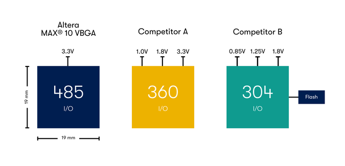 MAX® 10 FPGA New Packages: Up to 59% Higher I/O Density vs. Competitors