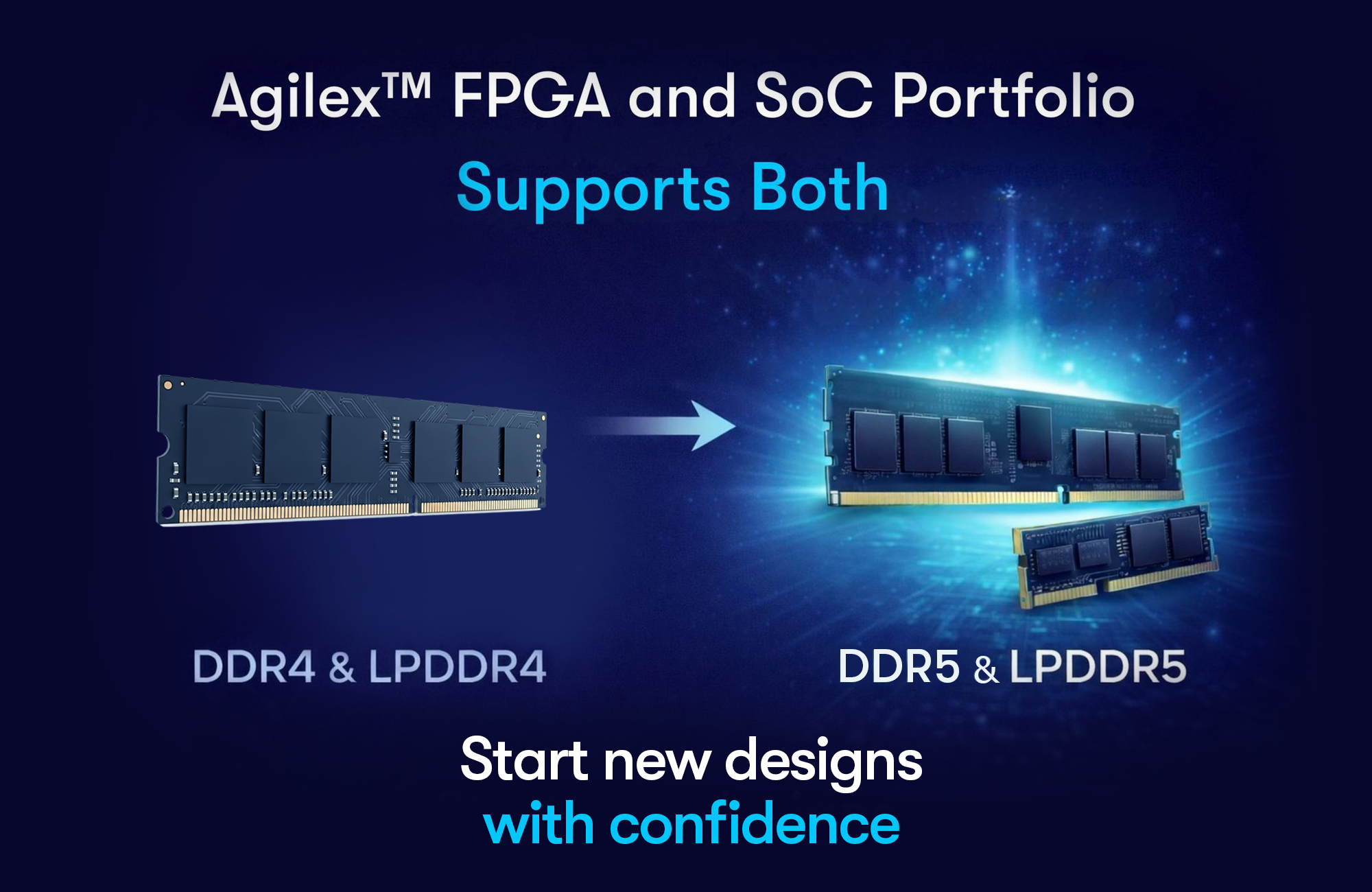 With DDR5 and LPDDR5 moving from ‘next-generation’ to ‘now,’ Altera offers customers a clear advantage: production-ready memory leadership, a broad and scalable FPGA portfolio, and a smooth transition path from DDR4 to DDR5—without waiting for future silicon.