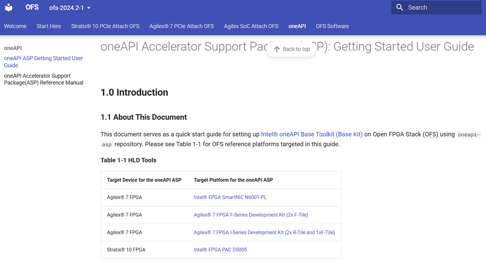 On the getting started page of the OFS website, the link to Stratix 10 shows: