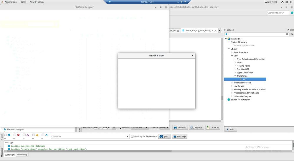 In linux terminal, I can open Quartus GUI, but when I was opening the platform designer, it just hang without showing up correctly as below.