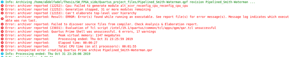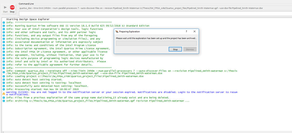 I am connecting to a university high performance computer through Putty. The computer has Quartus 19.1 installed. After opening my project in Quartus, I launch the design space explorer. I set it up the same way I do on my local machine but when I try to run it I get the following errors:
