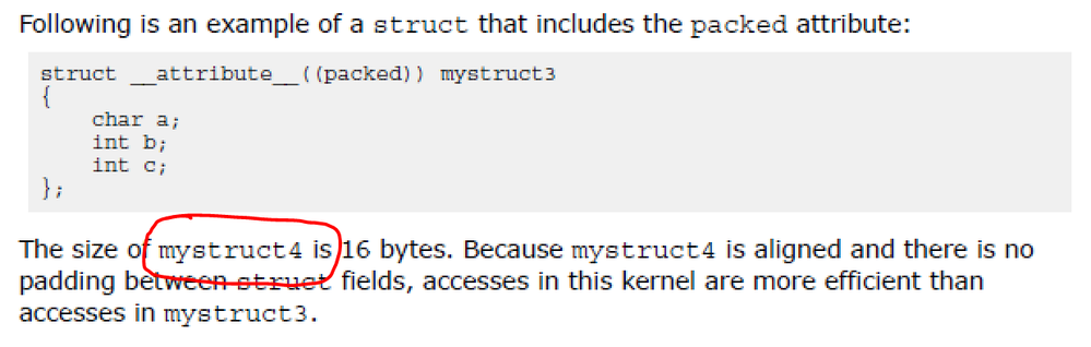 I had review the document and there is a mistake in the document. With the extra padding, the struct is aligned.