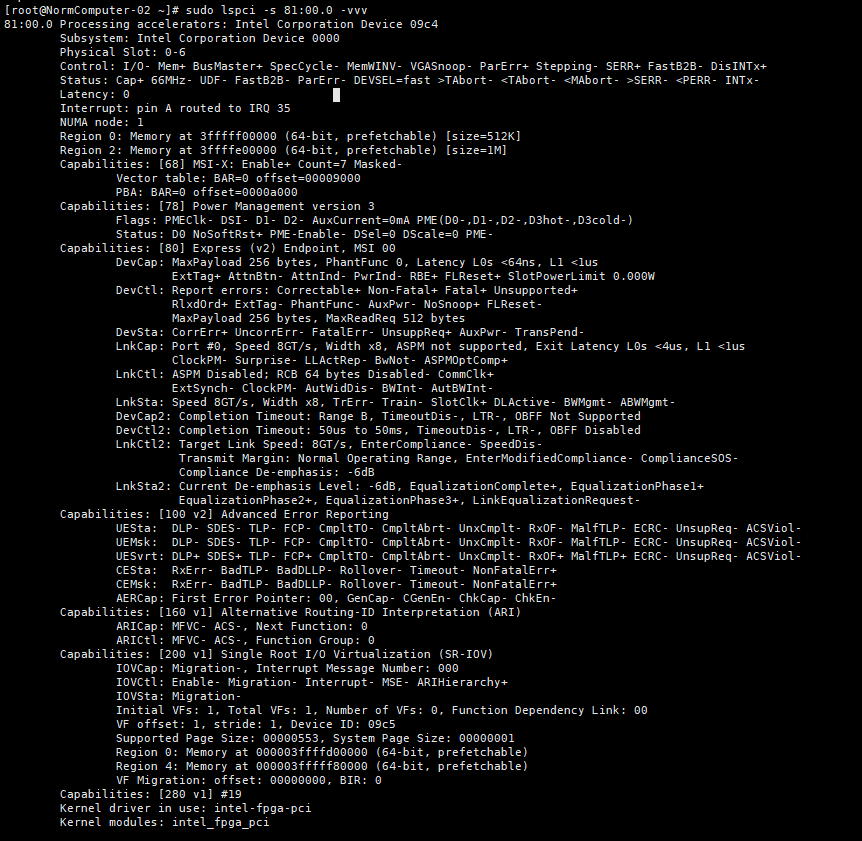Hi,My OS is CentOS7.2 and the output of sudo lspci -s 81:00.0 -vvv is as below: