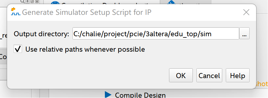 I build a quartus project and add this IP into the project,run IP Geneartion command and generate simulator setup script for IP command, I source and genrated tcl script, there are no errors in above steps.
