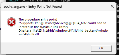 HLS Compiler 24.1 error - aocl-clang.exe - dll entry point not found