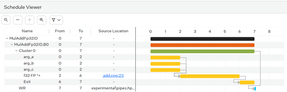 Let alone the fact that DSP is not inferred by the fitter, I don't really understand the schedule view and what the cluster exactly corresponds to along with the numerous write cycles.