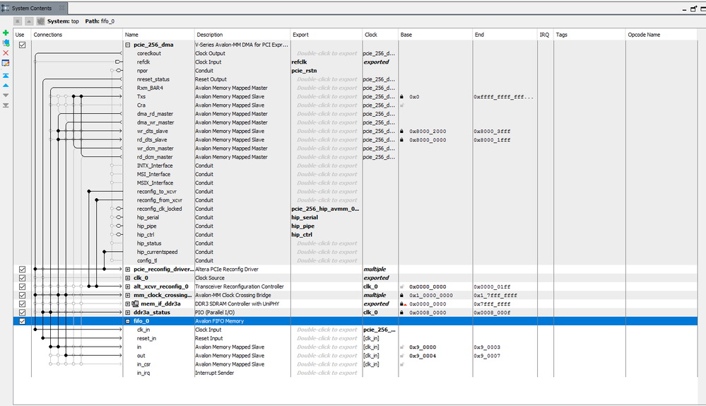 I am trying to transfer data between a PC and an FPGA. I am using C++ for the computer program and the FPGA is a Stratix V. On the FPGA, I need to use FIFOs to buffer recieved data and data about to be sent.On the FPGA I am using a PCIE example design from the user CD of the DE5-net kit.