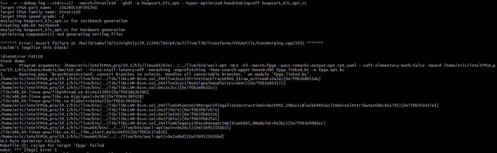 Hi, We will need your funcMerging.cpp files to duplicate this assertion message. Also, provide the steps that you have use. The steps should include the device that you were using. Thanks, - KennyT_altera