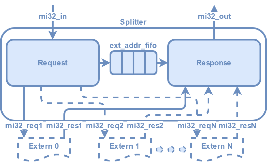 - If a request is READ, the request part writes address into ext_addr_fifo and starts response part.