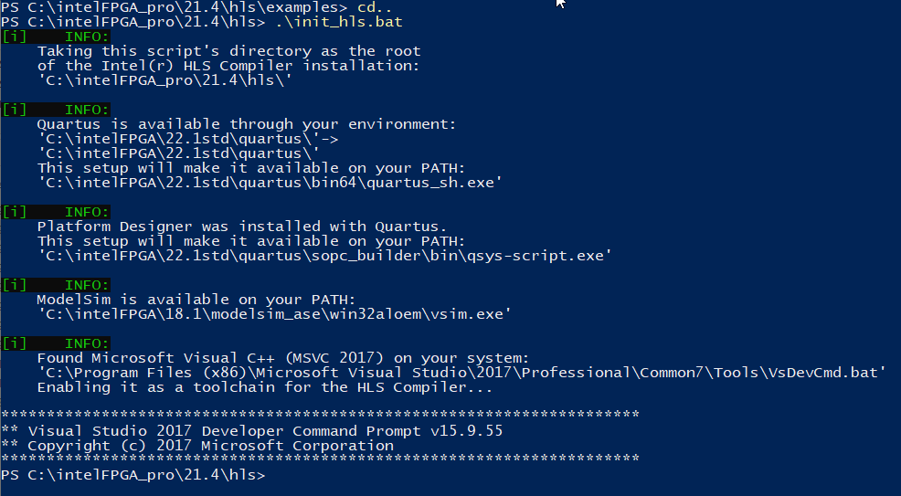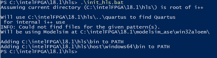 - I had to download the latest HLS compiler 21.4. The one which comes with Quartus 18.1 does not work on my computer. I was still not able to correctly run the init_hls.bat file.