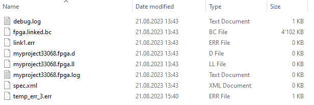I finally managed to get my HLS compiler working and already successfully compiled one of the example projects. So I gave it a try with my own design. First it looked good. The compiler started to build up the file structure in my folder: