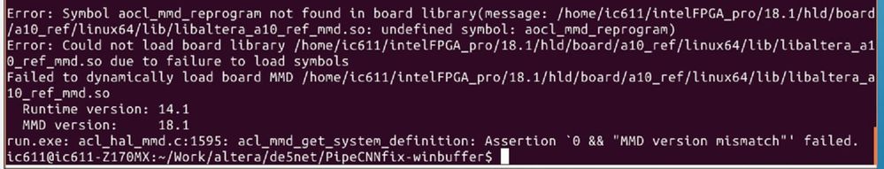 Is this possibly a bug ? I am using Ubuntu 14.04, and there is no such issue with the DE5net board and v18.1 std version runtime.