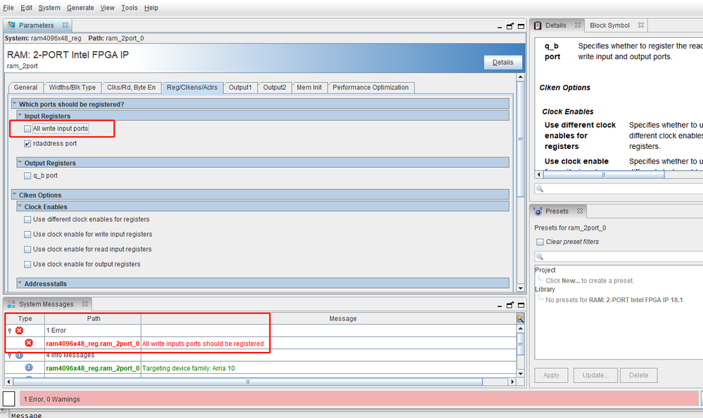 WeitingtingNew Contributor3 years agoRAM 2-port IPWhy can I only choose ”All write input ports“ when I use the RAM 2-port IP? If I don‘t choose,it will error.