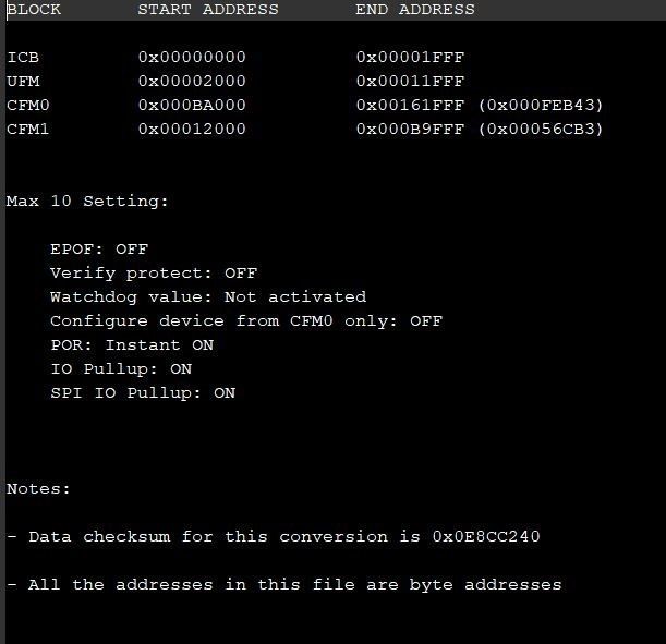 For MAX 10, I usually used .rpd (raw programming data file) as raw data.