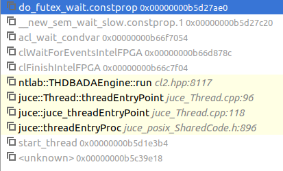 This runs for approx 100 times successfully and then suddenly stops forever at queue.finish() (e.g. clFinish under the hood). I can then see the FIFO feeding the channel running full, as I'm displaying this via an LED on the board, so this can not be the kernel waiting because of a channel stall.