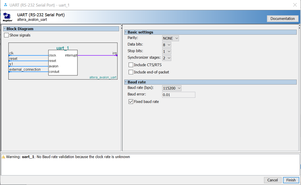 The problem of wrong data transmission using ip uart (rs232 serial-port) with de10 standard board