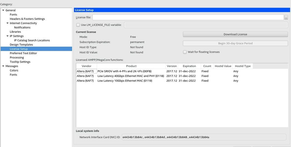 For current Intel PAC, Quartus17.1 was installed as a part of OPAE whole package , I just want to know the phisical location of the license file, which I suposse to see it through license setup in Quartus 17.1 GUI, but location part of license is empty as the picture i uploaded.