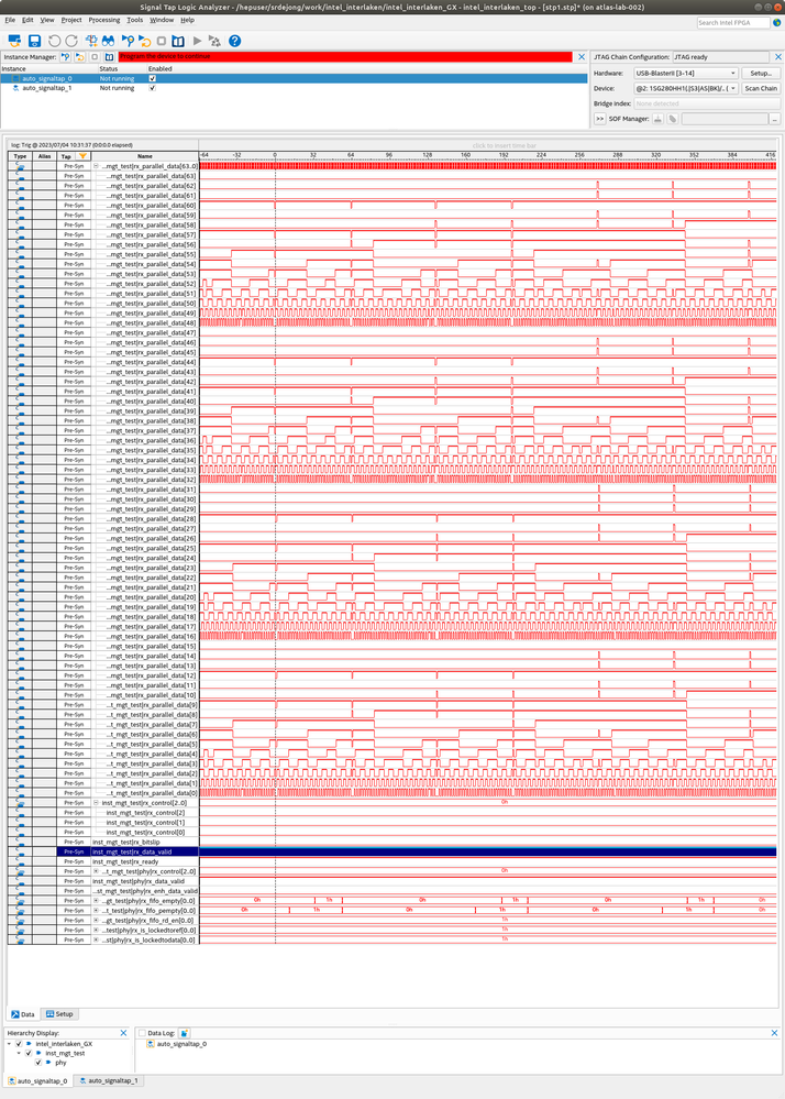 I have implemented a 25Gbps transceiver on a Stratix 10 h-tile devkit ( this one ). I am currently sending dummy data out on the TX side, which is looped back into the RX side.