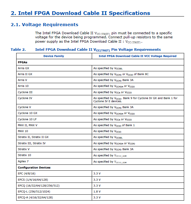 Additionally, I plan to connect a USB-Blaster to the CPLD for programming purposes. One of the pins on the USB-Blaster is labeled VCCTRGT. This voltage, supplied by me to the USB-Blaster, can vary over a wide range (0-5.5V).