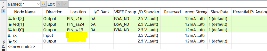 I'm doing a NIOSII tutorial but I got stuck to the UART pins assignment in the Quartus Pin Planner. Specifically I have to connect the Rx and Tx to their respective pins.