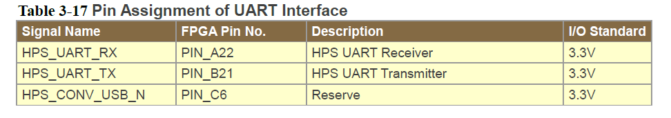 But even if I look at the terasic software screen shot, it only assign IO standard to UART pins but not the actual pin location itself. So, maybe you don't need to assign the pin location after all. You can check Quartus fitter report later to verify whether UART pins is auto assigned to correct pin location or not.