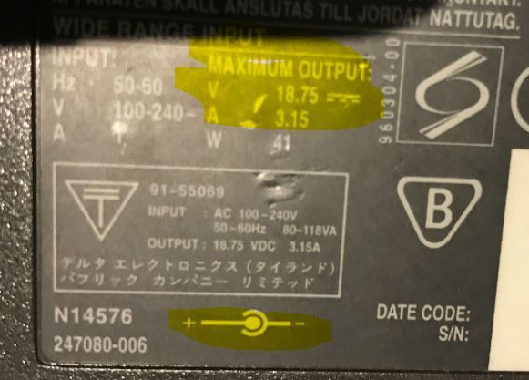 Welcome to INTEL forum. You are using 18.75VDC, 3.15A, center-positive power supply. May I know, is this power supply that comes together with Dev kit board? Could you attach picture of the power supply/adapter that you use.