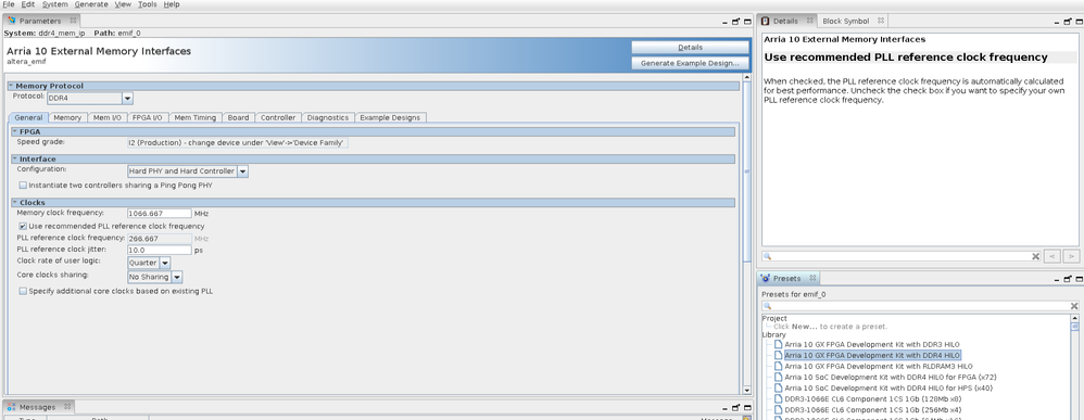 im using ARRIA 10 GX development kit with DDR4 HILO preset.