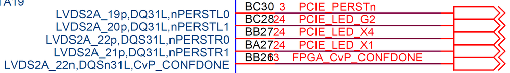 In the AvalonST IP User Guide, it indicates that the Hard IP's PHY has to be resetted through a dedicated pin nPERSTR0. But after checking the schematics of the board, it shows that these PERST pins are connected to LEDs for the PCIe edge connector.