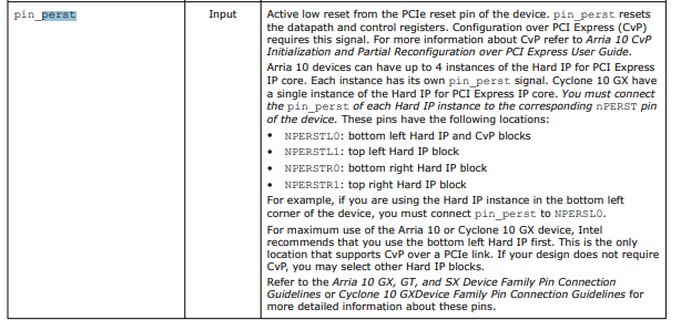 Arria 10 GX Dev Kit PCIe HIP root port PERST connection problem