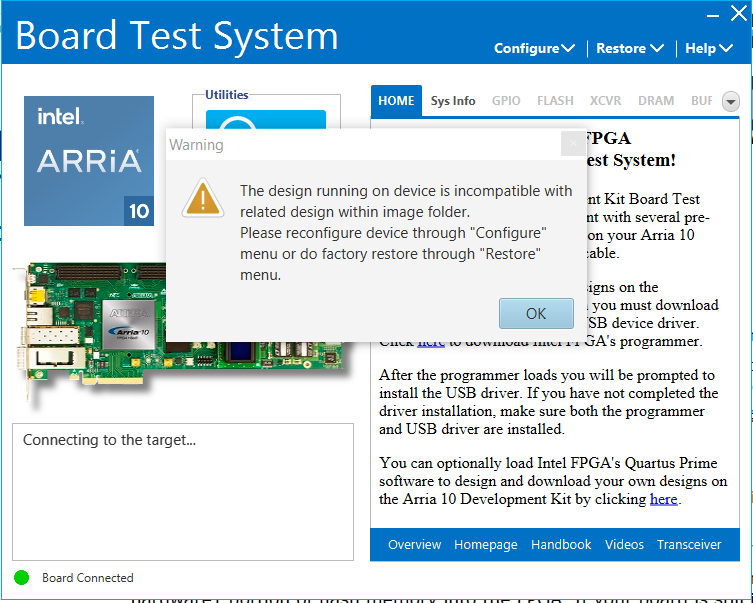 Arria 10 GX Development Kit BTS Failure (Claim slave service failed!)