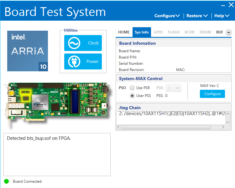 I have Arria 10 GX development kit with serial number 10APCIe0004683 and want to verify some peripherals using Board Test System (BTS). I downloaded Arria® 10 GX FPGA Development Kit (Production Edition) installer package (V22.4) using Intel website.