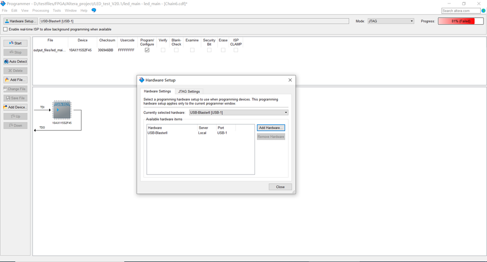 你好,我在Hardware Setup,没有找到hardware frequency设置,是下面图片这个地方吗?(我用的是Quartus 15.1标准版)