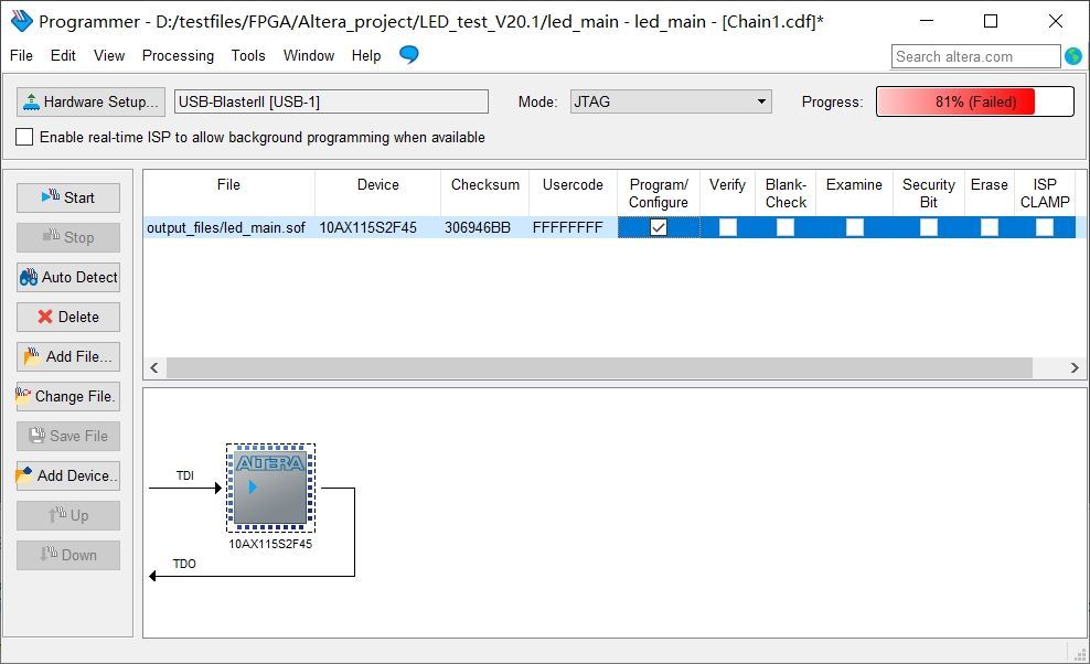 您是使用usb blaster II 吗?可以调TCK frequency 去6MHz吗? nCONFIG 因该要HIGH的,但是图表里,有掉去LOW一下。