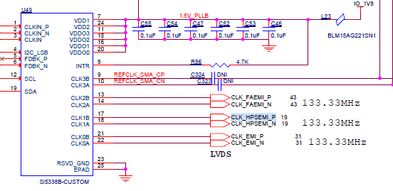 In Arria 10 development kit, CLK_HPSEMI_P/N is provided from Si5338B which is powered by 1.8V. It is provided to 2K bank which is powered by 1.2V(See images below). The supported I/O standards of Si5338B as per datasheet is LVPECL, LVDS(1.8V,2.5V,3.3V), HCSL and CML. What is the IO standard that will be used in Intel Arria 10 to make the signal logically compatible?
