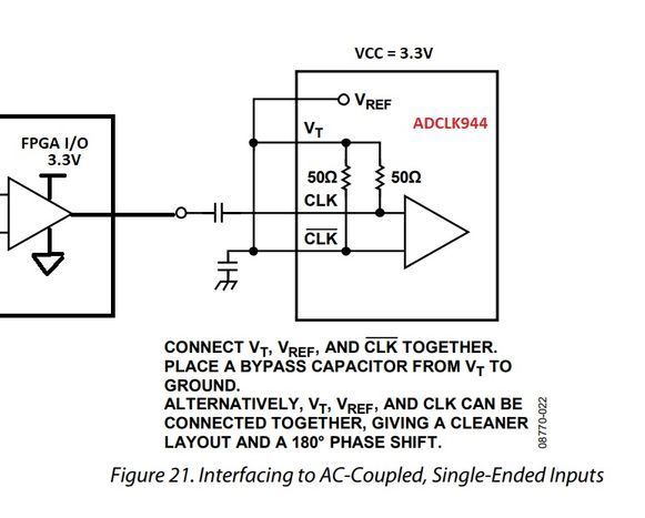 I want to connect 3.3LVCMOS single ended pin to ADCLK944.