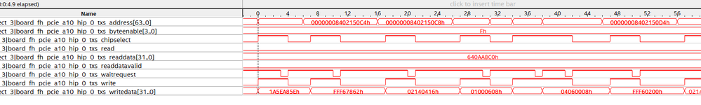 Firstly this recv path work fine as expect. From SigTap picture(below), we see per around ~10 clock cycles, "Txs_waitrequest" signal was deasserted to activate the mSGDMA write data through "Hip_Txs" into Host memory space. thus ethernet were transfered from fpga tse sub-system into Host memory correctly, and the transferring performance is correct.