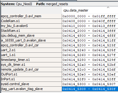 I'm asking because when I click in Platform Designer on "Assign Base Addresses", the tool change the Addresses of "epcq_controller.avl_mem" from 0x0000_0000-0x01FF_FFFF to 0x0200_0000-0x03FF_FFFF.