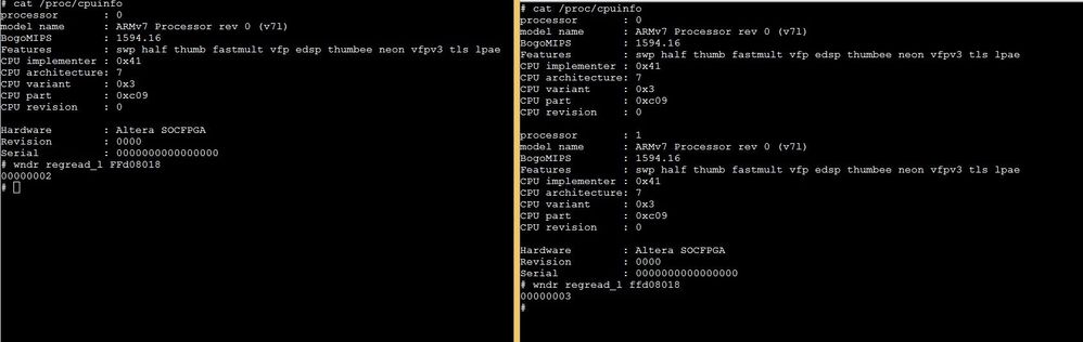 Correct me if I am wrong, the newly ordered 5CSEBA5U23I7S(which is a single core) devices shows both cores available (CPU0 and CPU1)?