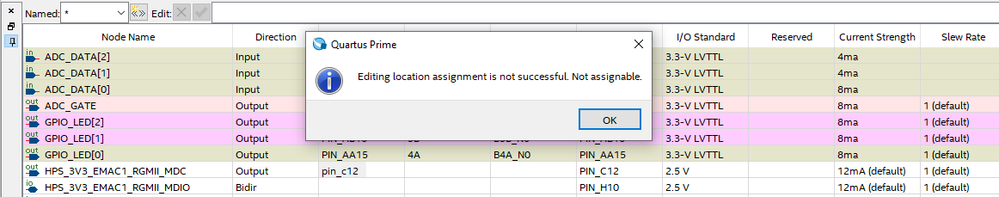 I cannot change the values for "Location" on the Pin Planner, I get an error message.