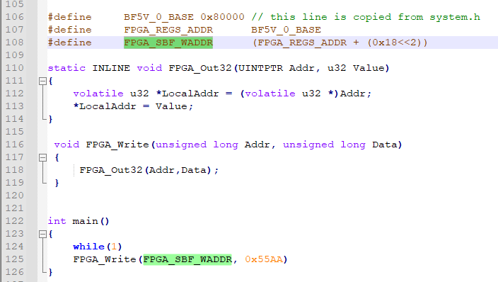 FPGA_Write(FPGA_SCAN_WADDR, 0x55AA); // write address