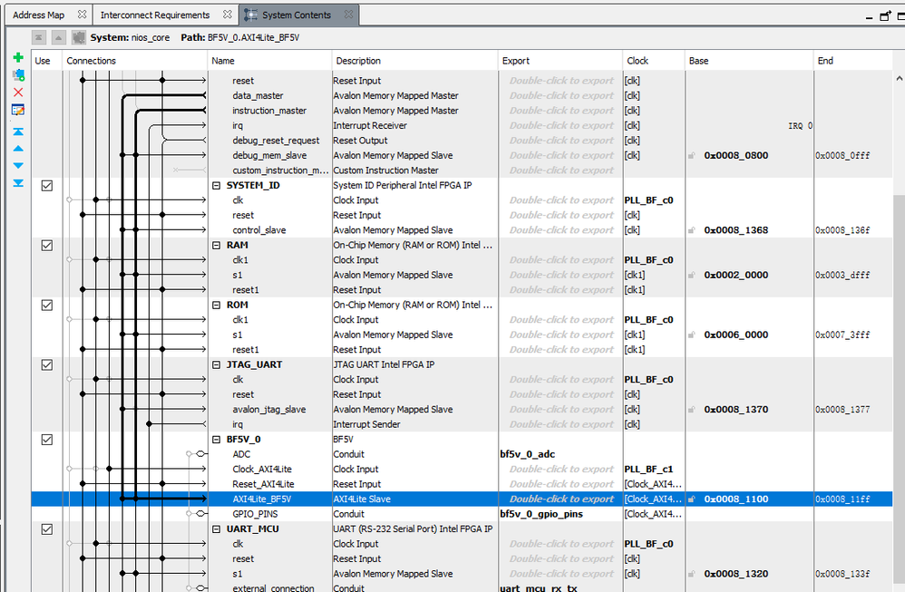 in Platform Designer, I added several IP, such as JTAG, NIOS, RAM, ROM and etc.