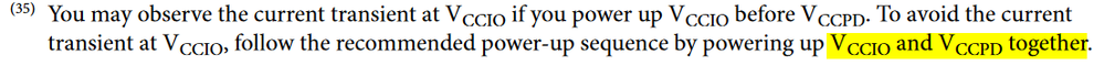 In my case i am using VCCIO as 3.3V ,1.35V,2.5V and VCCPD as 3.3V,2.5V & VCCPGM as 3.3V,
