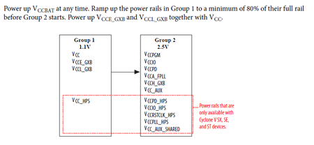Currently i am using the below cyclone V FPGA for my design, Part: 5CGTFD7D5F27I7N As per the CV-52001 (2023.10.18) -Volume 1: Device Interfaces and Integration The recommended power-up sequence g...