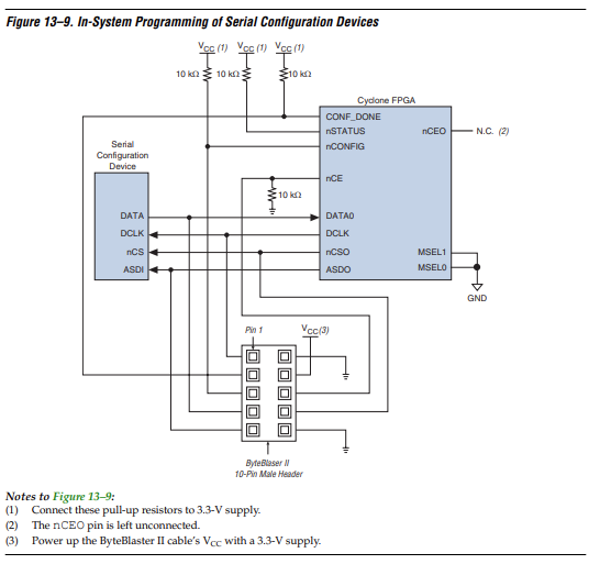 Error (209014): CONF_DONE pin failed to go high in device 1. Make sure all communication cables are securely connected, select a different device, check the power on the target system, or make sure all nCE pins are connected to GND. The Intel FPGA Knowledge Database contains many articles with specific details on how to resolve this error. Visit the Knowledge Database at https://www.altera.com/support/support-resources/knowledge-base/search.html and search for this specific error message number.