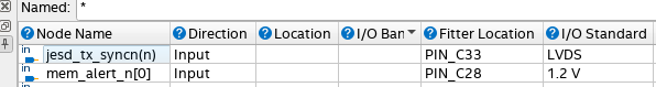 Info(14710): The I/O pad mem_alert_n[0] is constrained due to: User Location Constraints (PIN_E35)