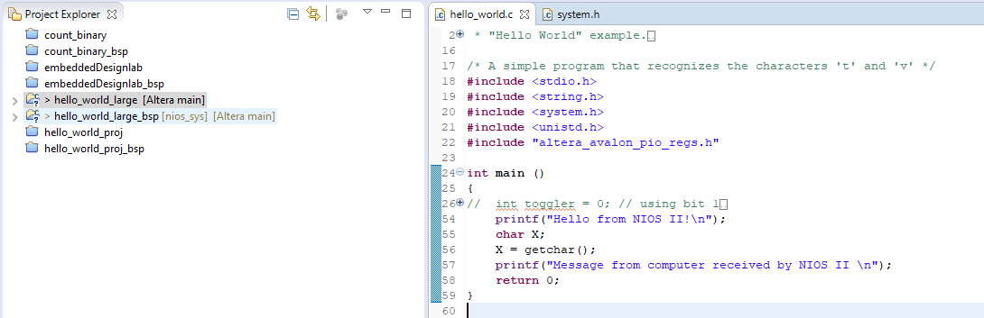 In the NIOS II SBT, I configured the BSP settings to use the UART core as the STDIN and STDOUT.