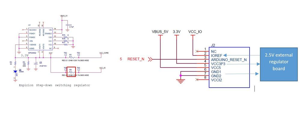 I need 2.5V on the VCCIOs but on this design of board there are just one regulator and if i change the voltage in this regulator(U1) the voltages of VCC_CORE and VCC_IO will be change together.