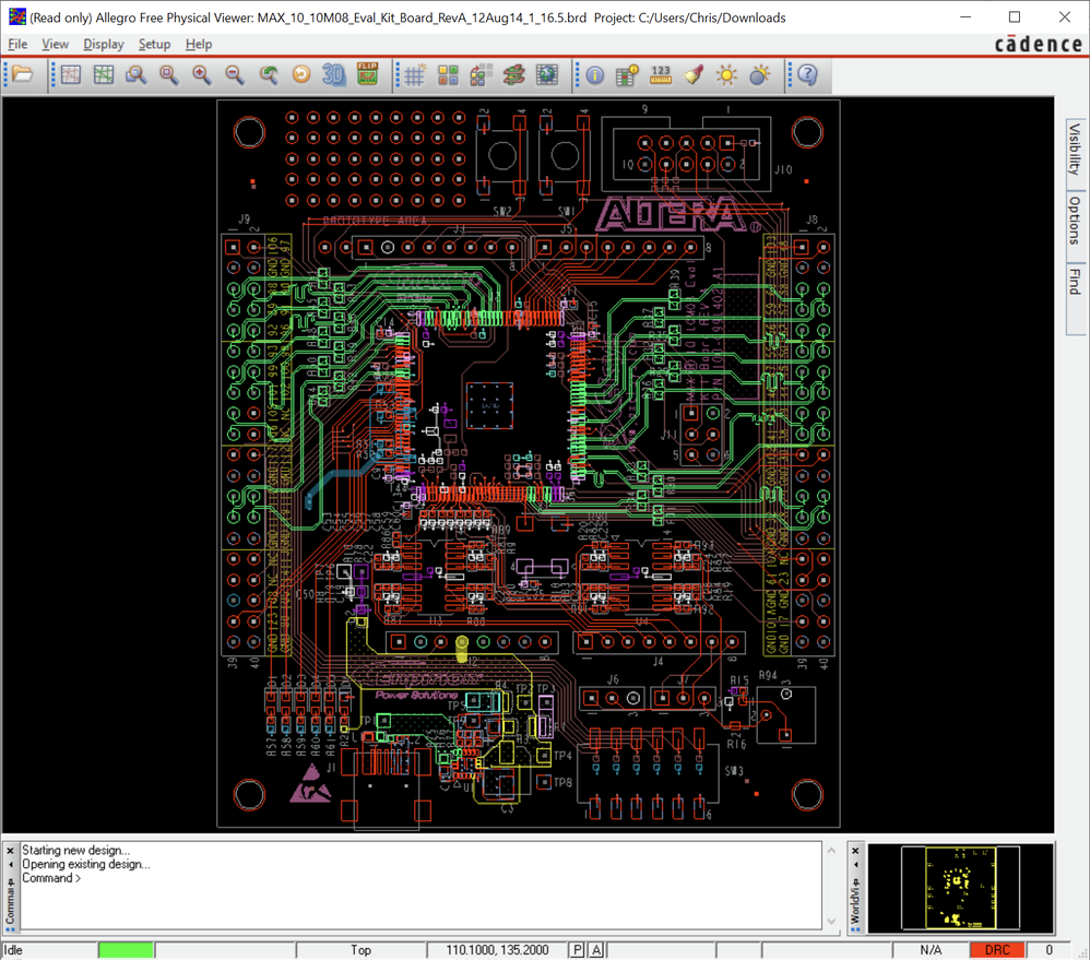According to the comment from the previous user. The comment can be accepted. Cadence can be used to open the BRD file for the EK-10M08E144.